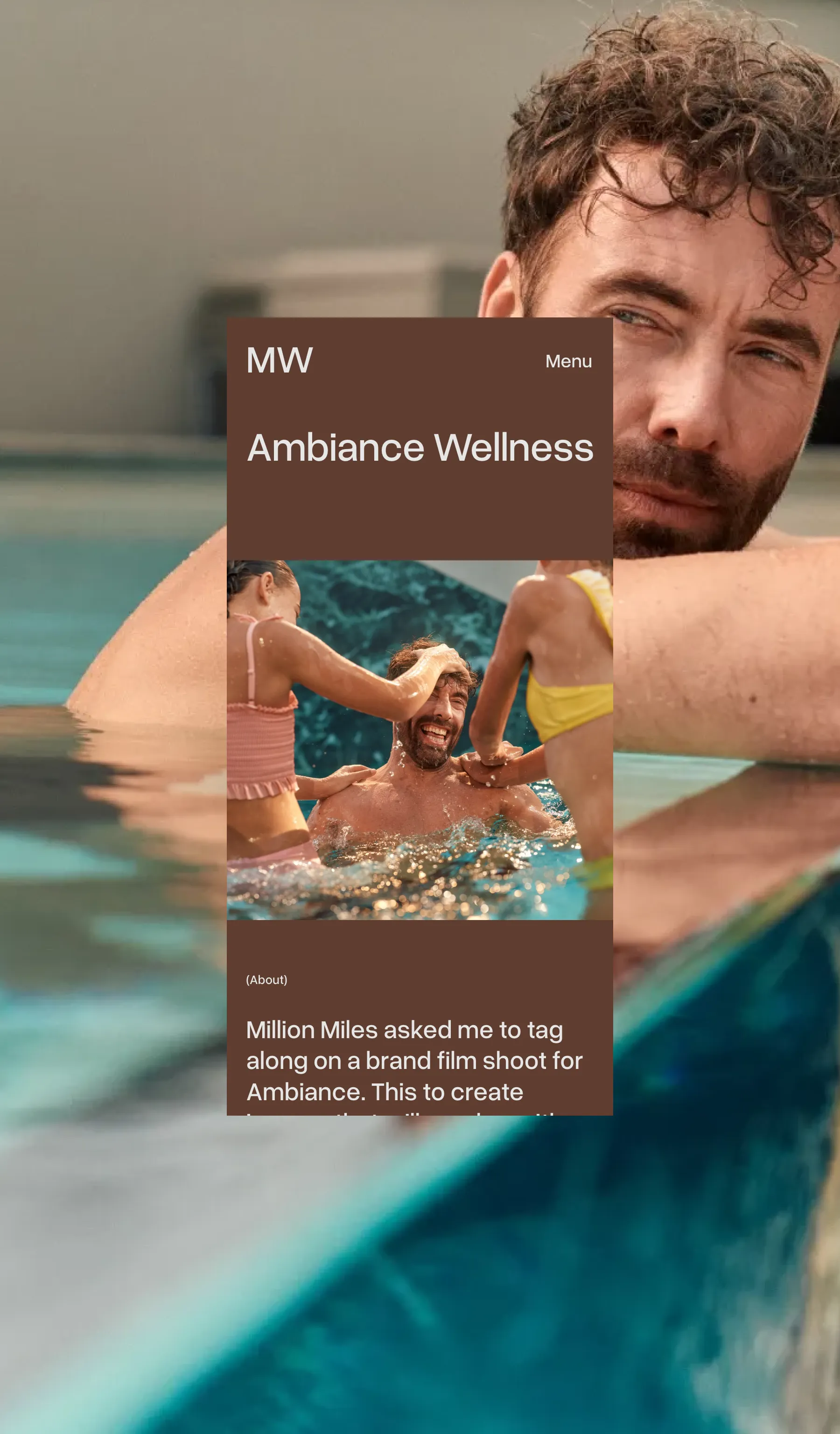 His work lives in a floating wall of projects. Designed to keep you scrolling. Discovering. Staying longer than you planned. On the detail pages, we go big. Large editorial layouts give each project space to breathe and speak for itself. No clutter. Just imagery and rhythm. Prefer to scan quickly? A built-in quick menu allows you to jump directly to specific projects or clients balancing exploration with usability.