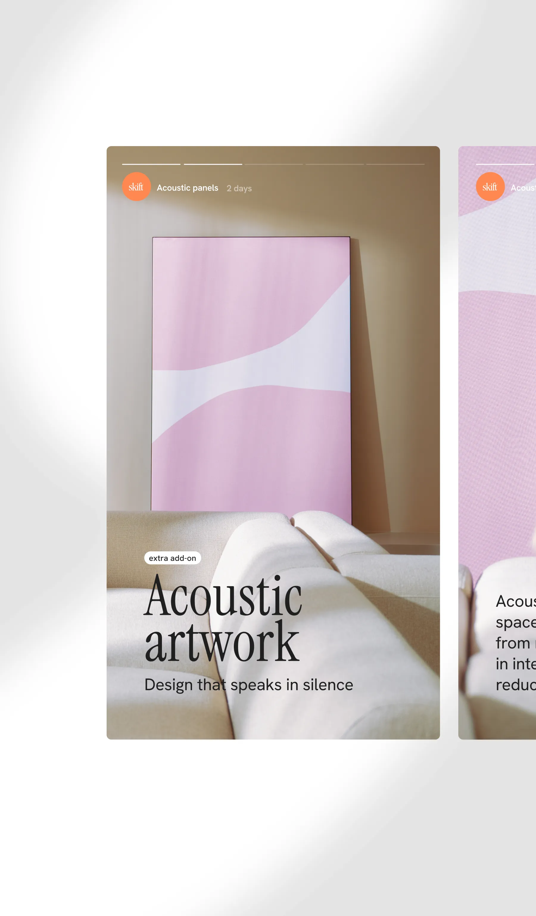 The challenge was clear: how do you make art flexible instead of permanent? How do you translate the idea of “switching” into a seamless digital experience? We designed and developed a platform where transformation is the core mechanic. The collection currently holds over 450 artworks. To make that freedom usable instead of overwhelming, we created a smart filtering system based on color, mood and collection. Visitors don’t just browse. They find their current state of mind. The purchase journey starts with the frame. A one-time foundation that users can fully configure, including the option to integrate acoustic panels directly in the configurator. From there, switching artwork becomes effortless.